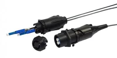 El adaptador Y FieldShiel Hardened Pushable Connector Y-Adapter está realizado en material termoplástico (resistente a la corrosión) y sellado ambiental para incrementar la fiabilidad y la duración en entornos OSP adversos.
