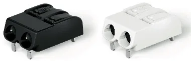 Estas nuevas bornas para PCB en formato THR se suministran en dos colores: blanco y negro, La Serie 2061 THR es útil para corrientes nominales de hasta 17,5 A y una tensión nominal de 320 V.