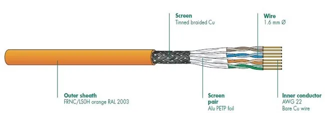 • Excelente efecto de protección debido a los pares apantallados individualmente y a la malla general de cobre.