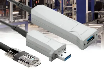 Al integrar los cables híbridos ópticos activos, los usuarios se benefician de las ventajas de USB 3.0 en aplicaciones que sólo se podrían implementar con GigE, por la distancia de conexión.