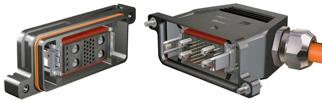 El sistema modular CombiTac permite configurar conectores eléctricos o híbridos según las necesidades del cliente. Además, permite combinar módulos para señales y datos, potencia de hasta 300A, alta tensión de hasta 5kV, aire comprimido, líquidos, fibras ópticas y termocuplas, entre otros