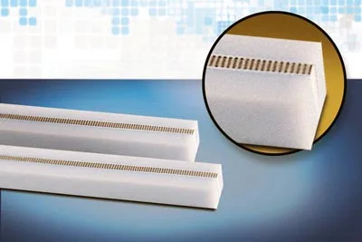 Fujipoly America Corporation subsidiaria de Fuji Polymer Industries, firma especializada en la fabricación de tecnología de caucho de silicona en las áreas de conectores elastoméricos, materiales de interfaz térmica, casetes de fusibles, conjuntos embellecedores para los LCD y extrusiones de caucho de silicona personalizadas, se complace en anunciar el conector Zebra 2005, que se construye a partir de la alternancia de capas de carbón conductor y silicona no conductora que son tan delgadas como 0,0004″ (es decir, 0,010 mm).