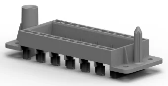 Los pines y las juntas del marco realizan el balance de las tolerancias mecánicas del sistema de arandelas (tolerancia de flotación de ±2 mm y tolerancia de sistema de compensación de ±4 mm). El HDC Thermoplastic Docking Frame se puede fijar en la placa usando tornillos M4 estándares, sin capuchas ni cubiertas. Todo esto incrementa la eficiencia en comparación con versiones metálicas y mejora las posibles prestaciones del componentes de cara a su implementación en el producto final.