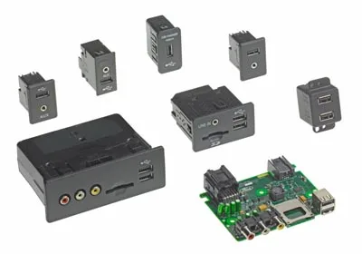 La solución de Módulos de Conectividad Multimedia de Molex es apta para múltiples tipos de conexión, tales como USB, HDMI, IEEE 1394, Ethernet, tarjetas de memoria SD, entradas de conexión hembra auxiliares, cargadores de energía, para cumplir los requisitos del sistema final. La alimentación eléctrica y la arquitectura de bus multimedia se pueden diseñar de modo que se adapten a los requisitos de la aplicación actual de los clientes; de este modo, se reduce o se elimina la necesidad de rediseñar la aplicación.