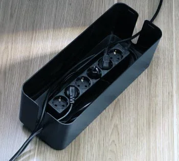 Se puede elegir entre dos tamaños diferentes, en función de cada una de las necesidades. La caja pequeña, de 11,8 x 23 x 11,5 cm, sirve para alojar las regletas de tres tomas con un diámetro de cable de hasta 15 mm de diámetro. La caja grande, con unas dimensiones de 15,6 x 40 x 13 cm, cuenta con espacio para regletas de hasta seis tomas con un diámetro máximo de cable de 20 mm. Ambos organizadores de cables tienen pies antideslizantes para una mayor sujeción en cualquier superficie.