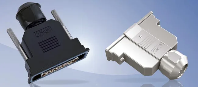 A pesar de su formato compacto, protección para conectores SUB-D son apropiadas para conectores D-SUB y Combination D-SUB. Esto es posible como consecuencia de la función de sellado en la entrada de cable y la conexión sin soldadura interior vía el aliviador de tensión.