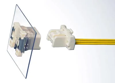 También incluye una acoplamiento reforzado con varias funciones de diseño, incluyendo mecanismos de cierre positivo dual interior con un clic audible, un pestillo de fácil uso para facilitar la inserción y extracción y ventanas para la comprobación visual del cierre. El diseño en forma de horquilla de los terminales del sistema de conexión cable a placa CLIK-Mate de 1,50 mm los protege contra daños, además de requerir una baja fuerza de inserción y ofrecer un contacto seguro.