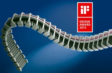 Los portacables constan de una banda flexible a la que se sujetan las piezas laterales (presillas) para guiar los cables. Los elementos se pueden ampliar en cualquier momento mediante la conexión de más banda y la sujeción de más piezas laterales. Para acortarlos basta cortar la banda. Los cables simplemente se presionan en las presillas de sujeción, lo que facilita el cambio de los cables con total seguridad en cualquier momento.