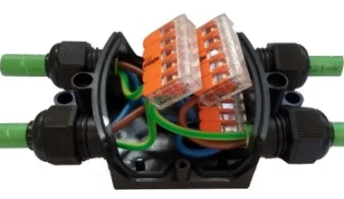 Es habitual encontrar situaciones donde tener que realizar la instalación eléctrica o de bus en entornos IP54 o IP68. Tanto para uno y otro caso, Dicomat ofrece una solución combinada de conexión compuesta por las bornas de conexión referencia 221-415 de WAGO dentro de la caja Techno TH209 de puntos de conexión (1 Entrada + 3 Salidas).